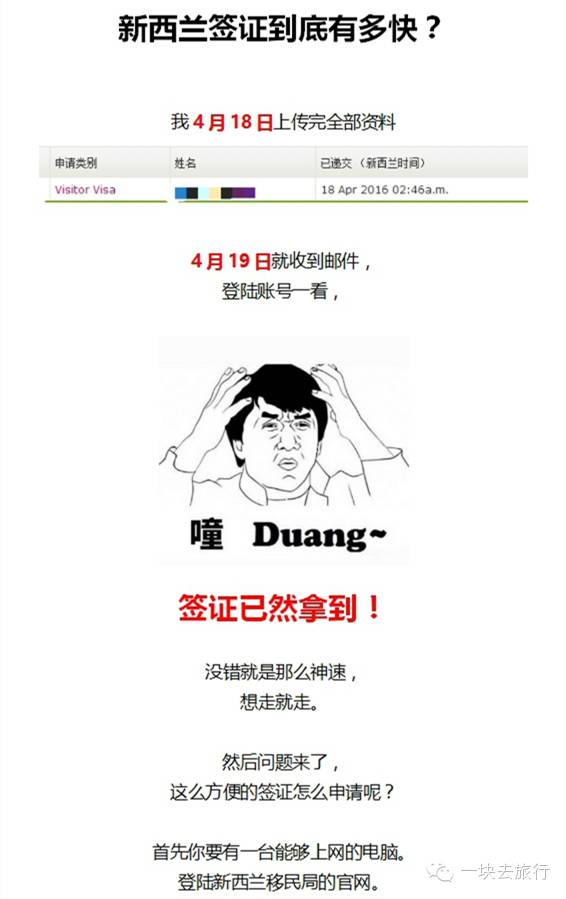 2016年4月19日,新西兰宣布新的电子签证正式对中国公民开放!消息一出,小伙伴们纷纷点赞叫好,终于在电脑上自己申请签证了,但也有小伙伴担心流程繁琐,申请周期漫长。不要着急,网友@狼水母 第一时间亲自上网申请电子签证,白本护照竟然2天就拿到了新西兰签证!